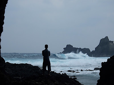 à Hualien, nous prennons le ferry-de-la-mort, 40 minutes de ce que le Lonely Planet appelle "le bateau-vomi"; arrivée sur Green Island